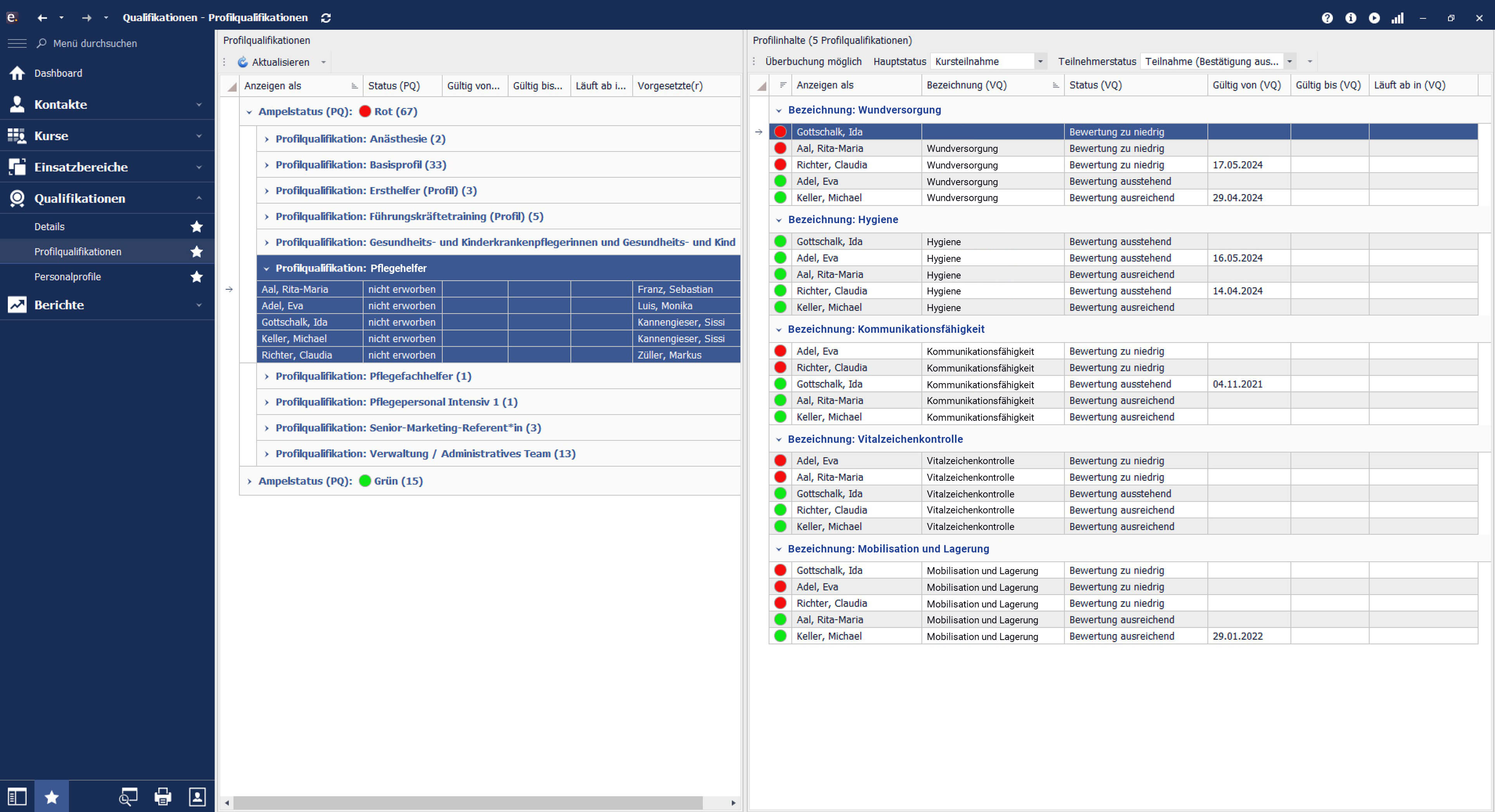 Führungskräfte ordnen Qualifikationsprofile einfach zu und sehen den Status ihres Teams jederzeit über den Webbrowser ein. Mitarbeitende melden sich über den Self-Service selbstständig zu Schulungen an oder dokumentieren Zertifikate. Das reduziert Abstimmungswege und schafft Freiräume für das Wesentliche: die Arbeit mit und für Menschen.