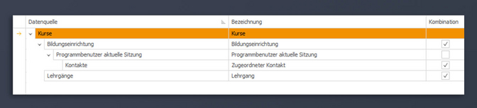 - Bildungseinrichtung (1:1 Beziehung zur übergeordneten Datenquelle – d. h. zur übergeordneten Datenquelle gibt es nur eine Bildungseinrichtung)