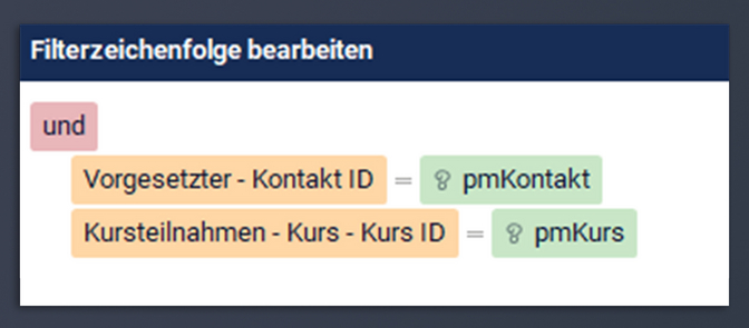 - Benachrichtigung von Vorgesetzten: Filtern Sie die Kontakt-ID der Vorgesetzten auf pmKontakt.