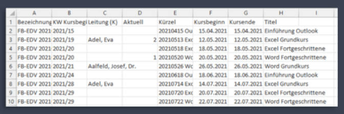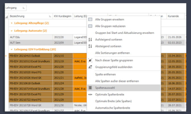 Und so geht’s: Rufen Sie eine beliebige Liste in easySoft 5 auf. Im folgenden Beispiel verwenden wir die Liste Kurse in der Menügruppe Kurse im Menüpunkt Details.