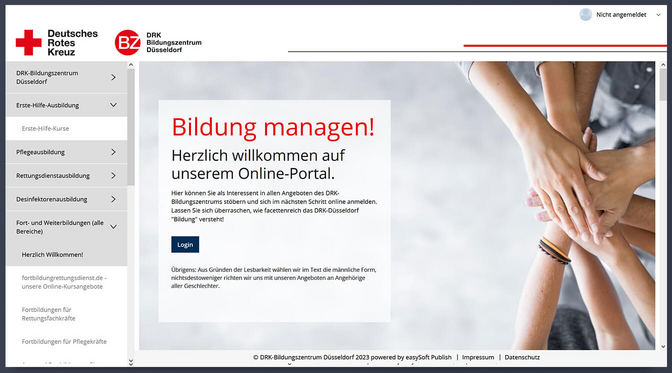 An dieser Stelle ein herzliches Dankeschön an das DRK Bildungszentrums Düsseldorf, dessen Seite wir hier als Beispiel nennen durften. Wer sich auf den Publish-Infoseiten genauer umsehen möchte, findet sie unter bz-dus.de.
