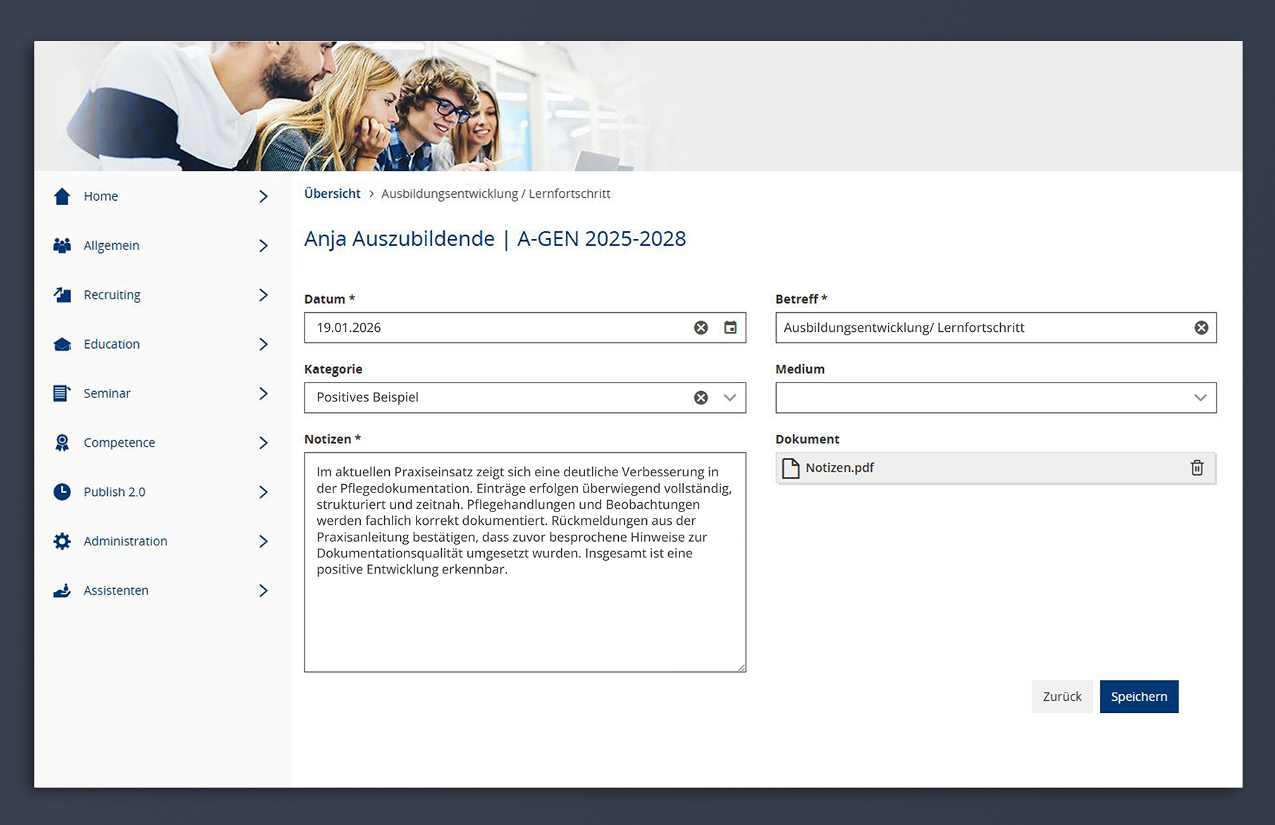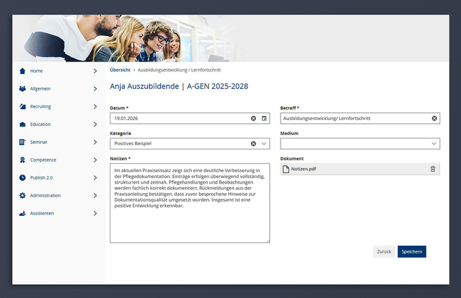- Lernfortschritte oder Schwierigkeiten im Praxiseinsatz festzuhalten