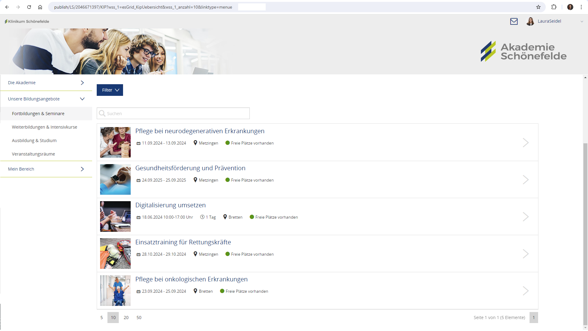Im persönlichen Bereich stehen wichtige Infos, eigene Anmeldungen, bevorstehende Veranstaltungen, Zertifikate und vieles mehr bereit.