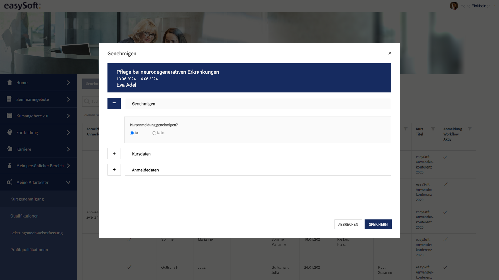 Wenn Sie Seminare und Schulungen auch für Ihre eigenen Mitarbeitenden anbieten, bilden Sie den Genehmigungsprozess durch die Führungskraft ganz bequem digital ab.