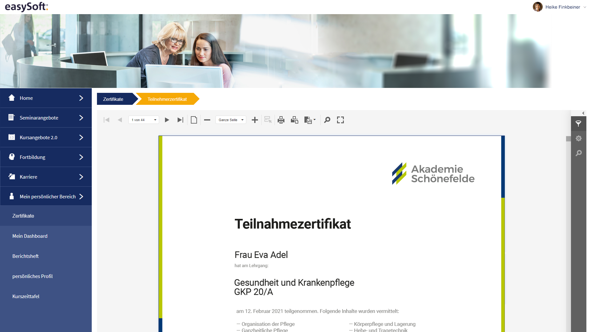 Mit easySoft stellen Sie Ihre Seminare online dar – inklusive Anmeldeformular, Genehmigungsworkflow und Teilnahmezertifikat zum Download. Auch Feedback-Fragebögen lassen sich digital erfassen. Über Schnittstellen zu Moodle oder Ilias bieten Sie zusätzlich Blended-Learning-Formate und E-Learning-Kurse an.