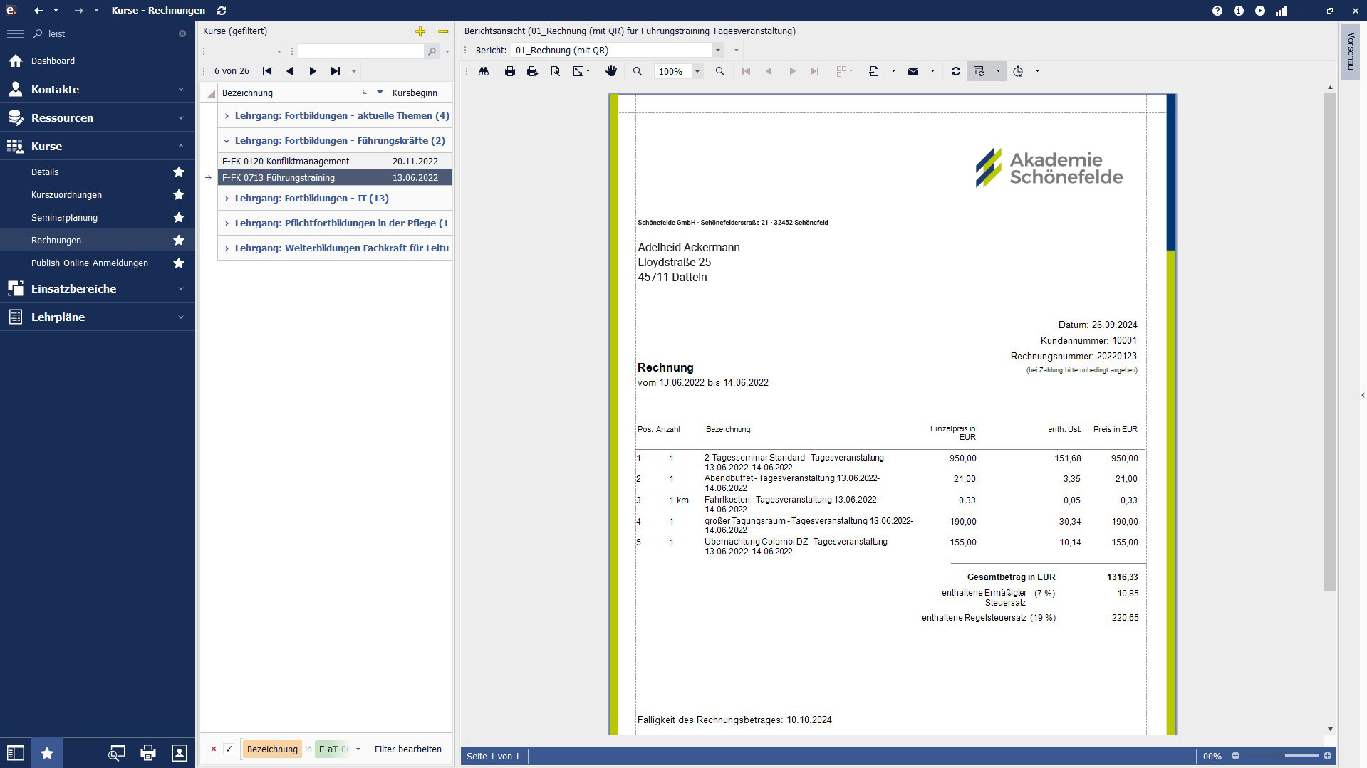 Die Abrechnung Ihrer Seminare und Bildungsangebote erledigen Sie direkt im Programm. Dabei lassen sich auch Förderungen und Bildungsgutscheine berücksichtigen.